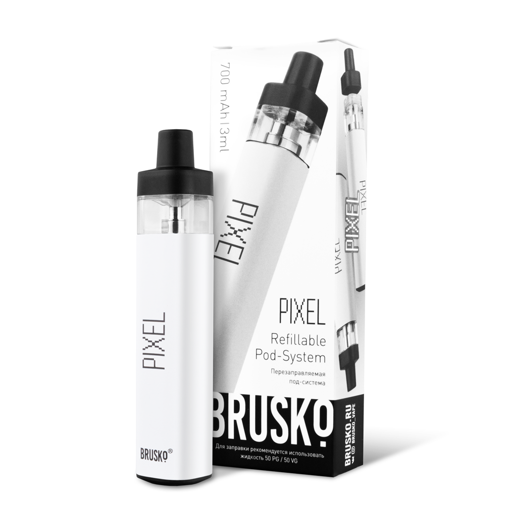 Перезаправляемая Под-Система Бруско Пиксель (Brusko Pixel) 700 mah, Белый - купить в Анадыре