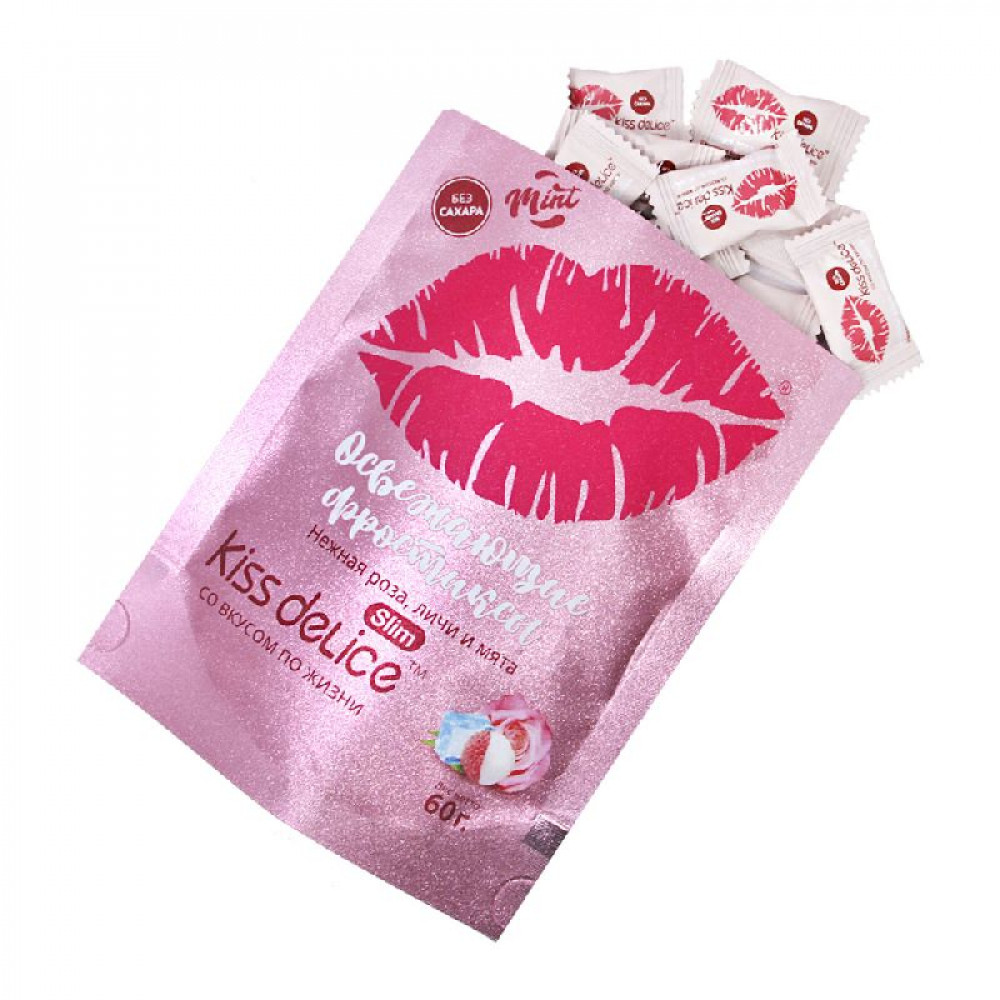Аромат/вкусРоза, личи и мята Без сахараДа БрендKiss Delice